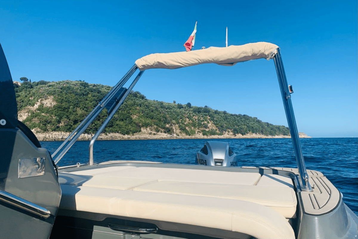 La lancha neumática 780 es la solución ideal tanto para simples traslados como para quienes no quieren renunciar a un maravilloso día a bordo para sumergirse en las aguas cristalinas de Capri o admirar la encantadora costa de Positano y Amalfi en familia o con su pareja.