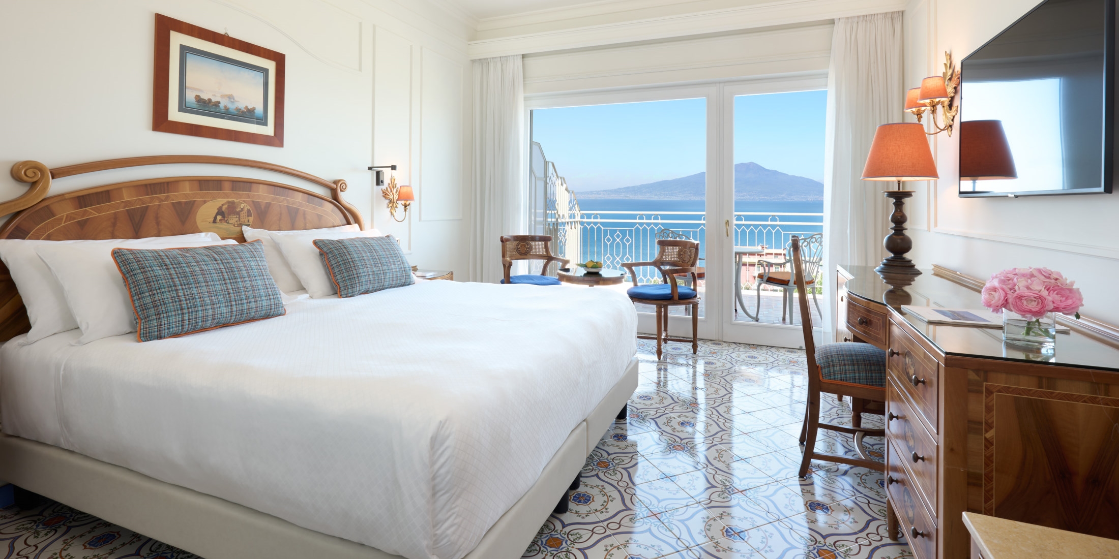 Prestige double rooms are provided with balcony overlooking the sea with breathtaking view of the Mt. Vesuvius, the entire Gulf of Naples and the Park.